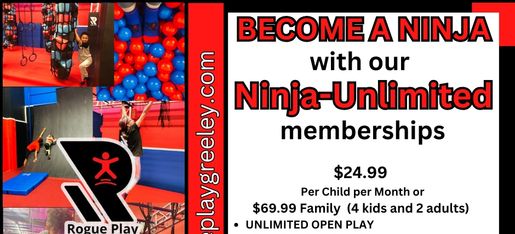 Looking for a fun way to celebrate a birthday party in NOCO area? We got the perfect place for you. Rogue Play Trampoline & Ninja Center offers a variety of attractions for everyone and comfortable party areas. Our party areas are also a great option for Birthday Parties, Sports Banquet, Family Reunions, End of Season Sport's party, Friends Gatherings, Corporate Events, etc. Check out our different party areas for your next event. In order to have affordable celebrations, we have eliminated the extras like trampoline socks and reduced our party package prices. Bring your own trampoline socks to celebrate. Grippy socks are required to play.